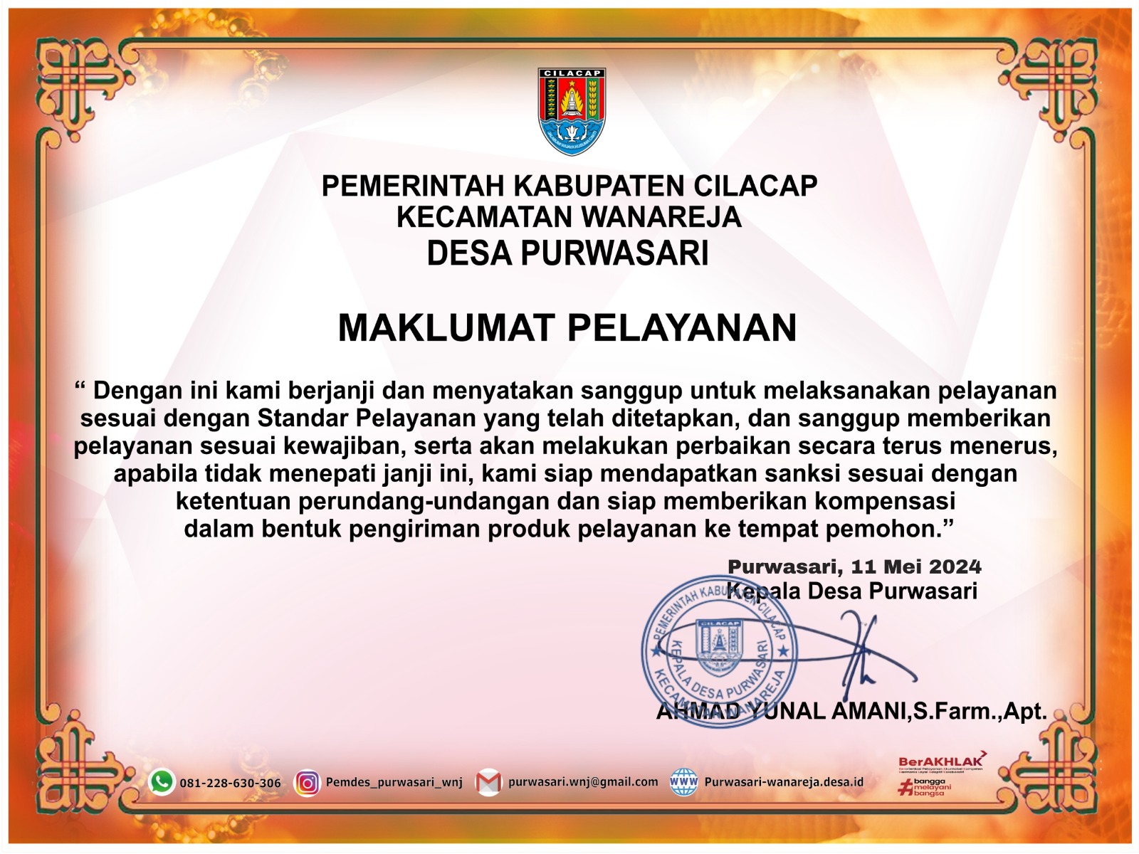 Anda Punya pertanyaan, keluhan, masukan atau saran, seputar pelayanan kami? Silahkan klik disini, untuk sampaikan.
